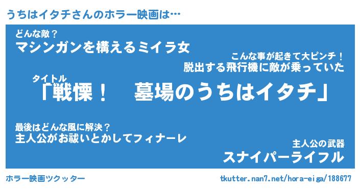 | 伝説のあだ名 | 『封印されしスナイパーうちはイタチ』 |