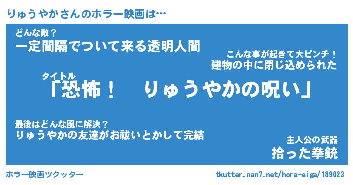 | 男性向けラノベタイトル風あだ名 | 『りゅうやかの憂鬱』 |