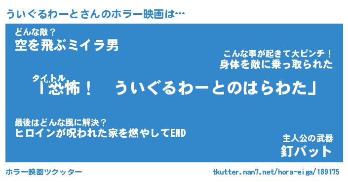 | 男性向けラノベタイトル風あだ名 | 『ういぐるわーとの憂鬱』 |