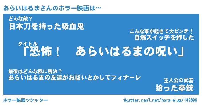 | 男性向けラノベタイトル風あだ名 | 『あらいはるまの憂鬱』 |