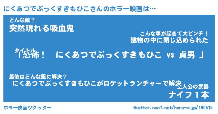 | 男性向けラノベタイトル風あだ名 | 『にくあつでぶっくすきもひこの憂鬱』 |