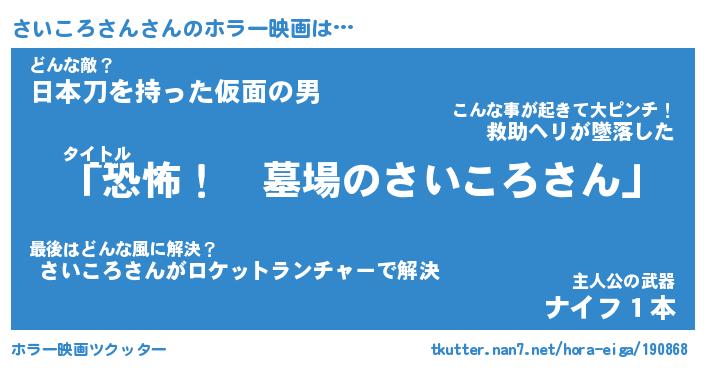 | 伝説のあだ名 | 『伝説のスナイパーさいころさん』 |