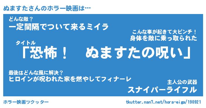 | 男性向けラノベタイトル風あだ名 | 『ぬますたの憂鬱』 |