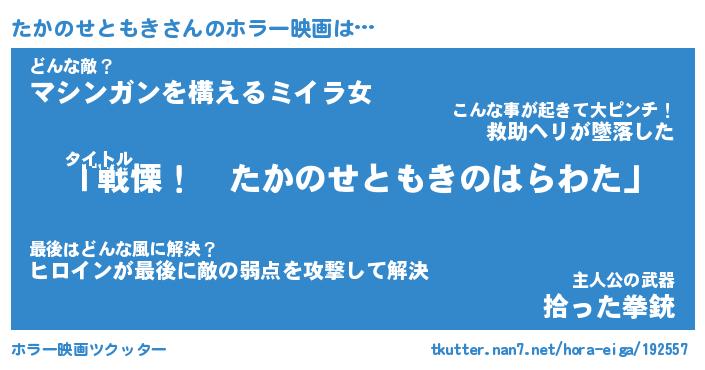 | 伝説のあだ名 | 『不死鳥の竜騎士たかのせともき』 |