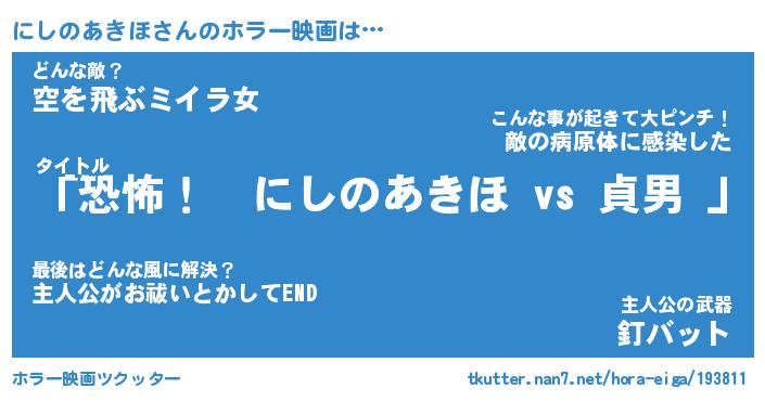| ヒーロー風カッコイイあだ名 | 『スーパーニシノアキホ』『炎刃騎士ニシ』 |