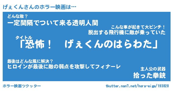 | ヒーロー風カッコイイあだ名 | 『スーパーゲェクン』『魔戒騎士ゲェ』 |