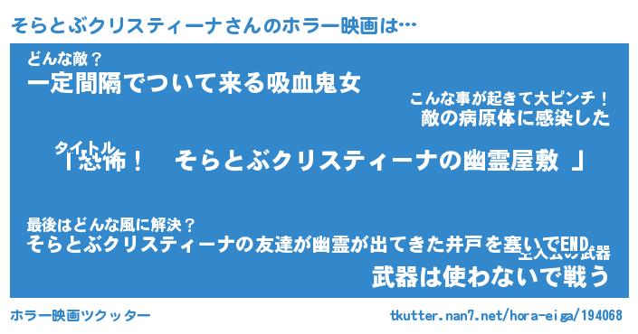 | 胡散臭い通販商品みたいなあだ名 | 『必ず成功する霊験あらたかなお札…その名も「そらとぶクリスティーナ」』 |