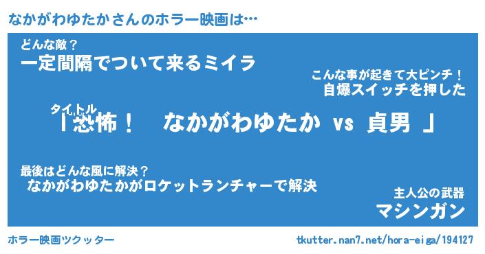 | 男性向けラノベタイトル風あだ名 | 『なかがわゆたかの憂鬱』 |