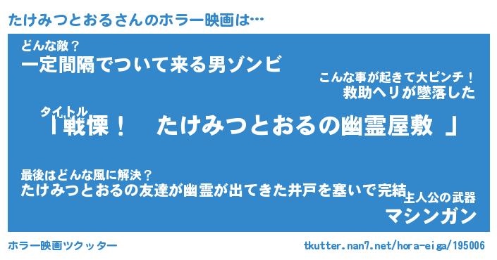 | ヘコむあだ名 | 『たけもー』『なまこ酢』『たけっぺ』 |