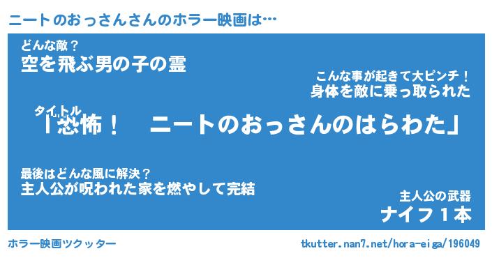 | 男性向けラノベタイトル風あだ名 | 『ニートのおっさんの憂鬱』 |