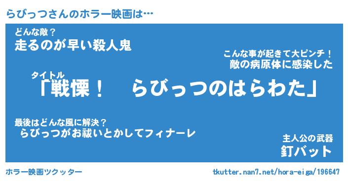 | 2回繰り返すあだ名 | 『らびらび』『ららびび』『いらいら』 |