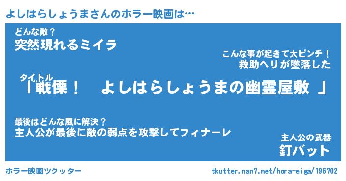 | 伝説のあだ名 | 『封印されしスナイパーよしはらしょうま』 |