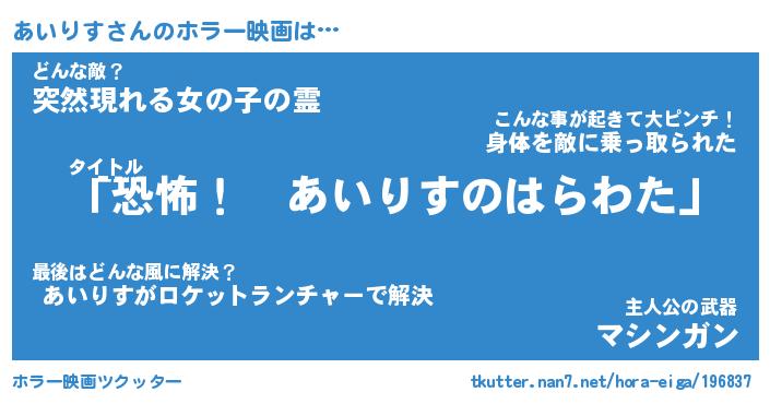 | 意味不明あだ名 | 『ペロリンあいりす』『永久保存あいりす』 |