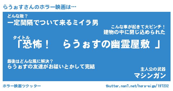 | 男性向けラノベタイトル風あだ名 | 『らうぉすの憂鬱』 |