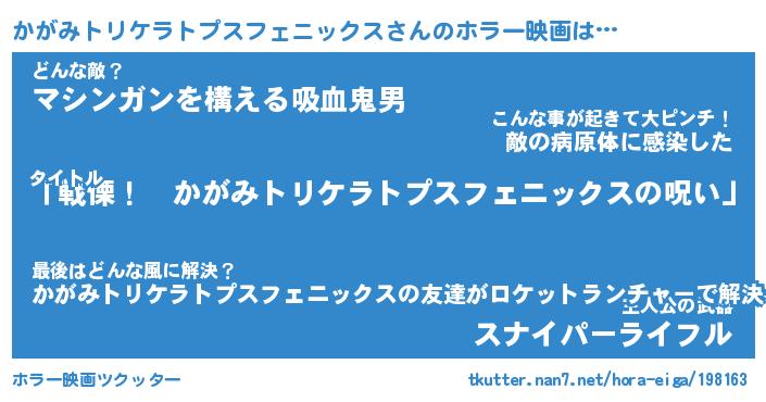 | ヒーロー風カッコイイあだ名 | 『スーパーカガミトリケラトプスフェニックス』 |