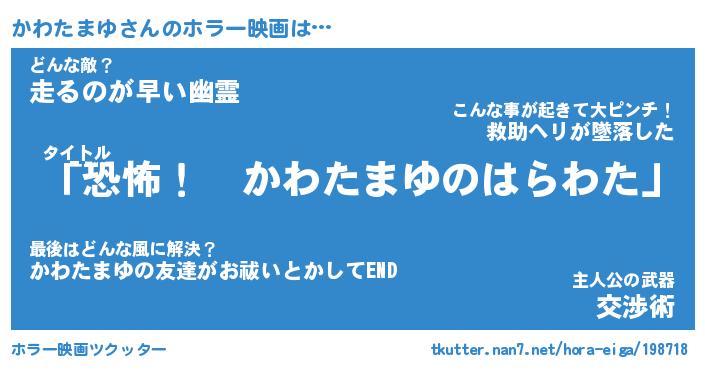 | 男性向けラノベタイトル風あだ名 | 『かわたまゆの憂鬱』 |