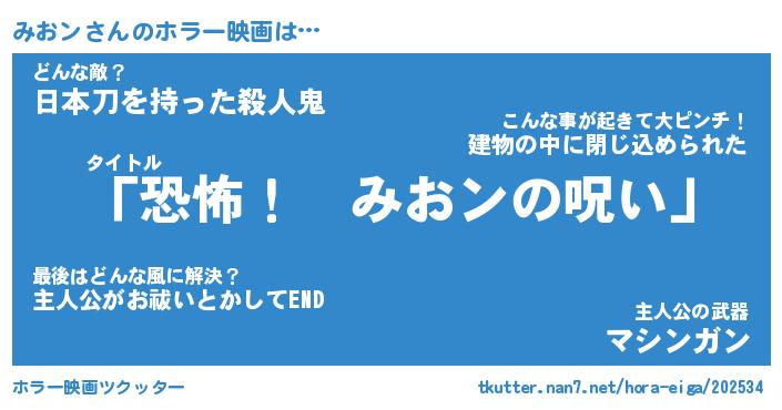 | 男性向けラノベタイトル風あだ名 | 『みおンの憂鬱』 |