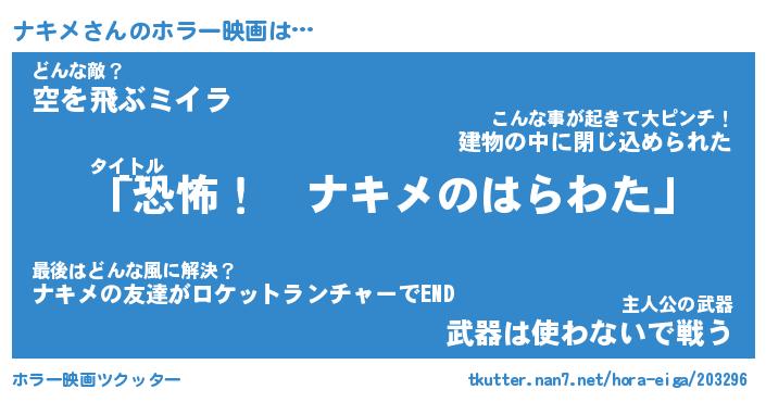 | ヒーロー風カッコイイあだ名 | 『スーパーナキメ』『ウルトラナキメマン』 |