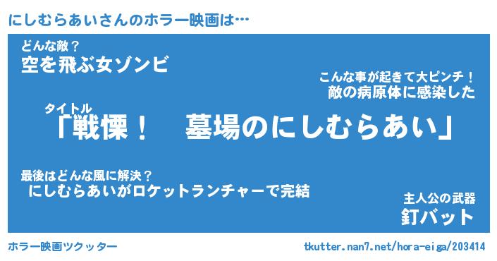 | 男性向けラノベタイトル風あだ名 | 『ニシムラアイアートオンライン』 |