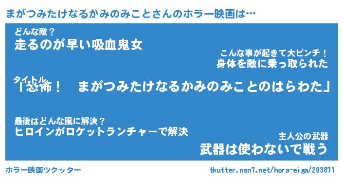 | 胡散臭い通販商品みたいなあだ名 | 『必ず成功するブレスレット…その名も「まがつみたけなるかみのみこと」』 |