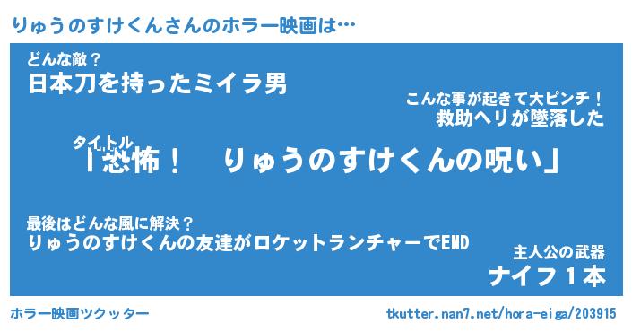| 男性向けラノベタイトル風あだ名 | 『りゅうのすけくんの憂鬱』 |