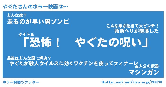 | 男性向けラノベタイトル風あだ名 | 『やぐたの憂鬱』 |