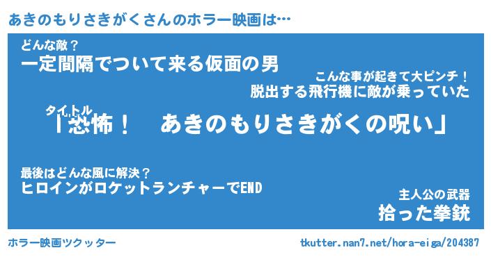 | 男性向けラノベタイトル風あだ名 | 『あきのもりさきがくの憂鬱』 |
