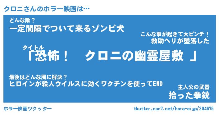 | 胡散臭い通販商品みたいなあだ名 | 『モテモテ間違いなし霊験あらたかなお札…その名も「クロニ」』 |