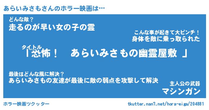 | 男性向けラノベタイトル風あだ名 | 『あらいみさもの憂鬱』 |