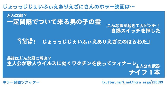 | 男性向けラノベタイトル風あだ名 | 『じょっっじじぇいふぃえありえざにの憂鬱』 |