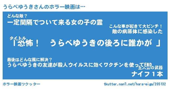 | 男性向けラノベタイトル風あだ名 | 『うらべゆうきの憂鬱』 |