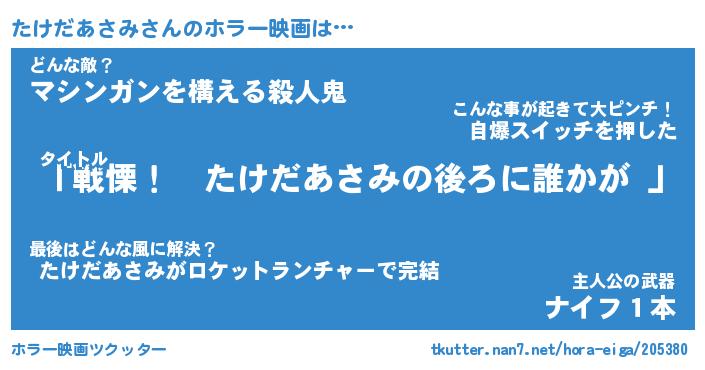 | 伝説のあだ名 | 『不死鳥の傭兵たけだあさみ』 |
