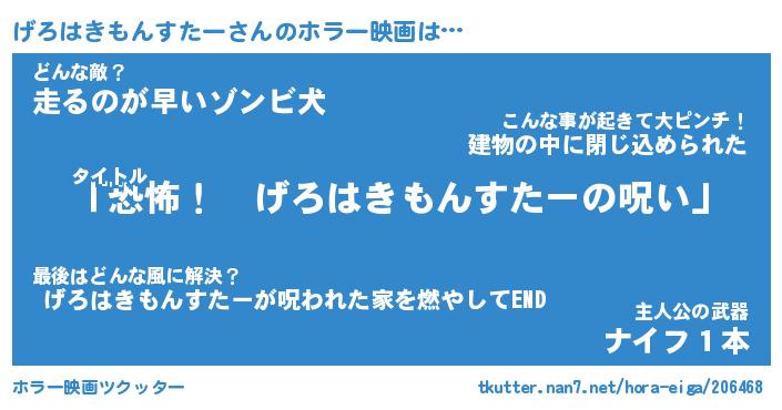 | 男性向けラノベタイトル風あだ名 | 『げろはきもんすたーの憂鬱』 |
