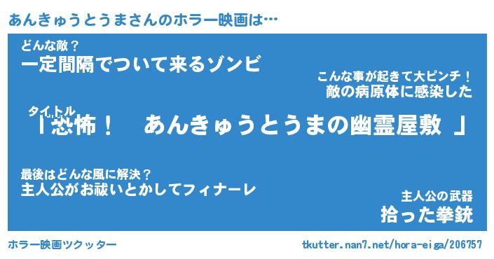 | 男性向けラノベタイトル風あだ名 | 『あんきゅうとうまの憂鬱』 |