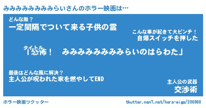 男性向けラノベタイトル風あだ名 | 『みみみみみみみみらいの憂鬱』 |
