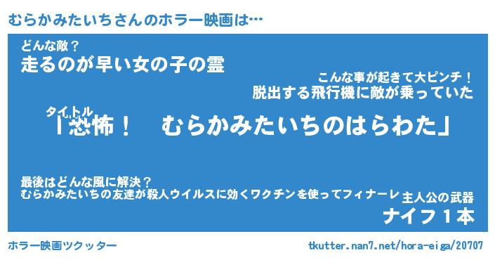 | 男性向けラノベタイトル風あだ名 | 『むらかみたいちの憂鬱』 |