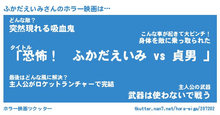 男性向けラノベタイトル風あだ名 | 『ふかだえいみの憂鬱』 |