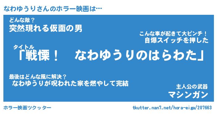 | ヒーロー風カッコイイあだ名 | 『スーパーナワユウリ』『幻影騎士ナワ』 |