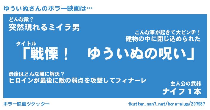 | 意味不明あだ名 | 『ペロリンゆういぬ』『永久保存ゆういぬ』 |