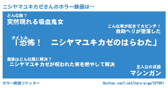 | 男性向けラノベタイトル風あだ名 | 『ニシヤマユキカゼの憂鬱』 |