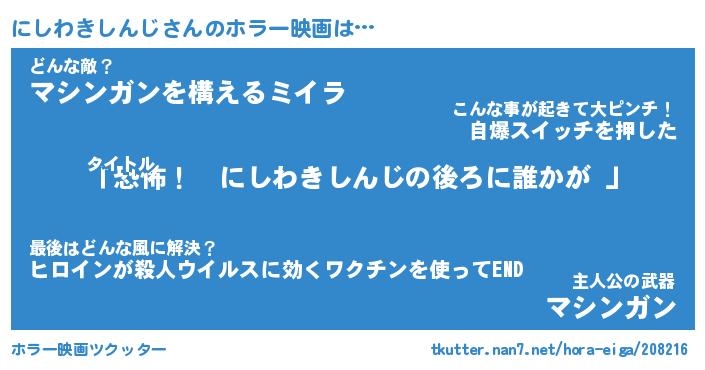 | 男性向けラノベタイトル風あだ名 | 『にしわきしんじの憂鬱』 |