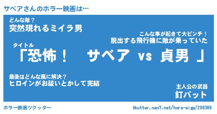 | 胡散臭い通販商品みたいなあだ名 | 『必ず成功する霊験あらたかなお札…その名も「サベア」』 |