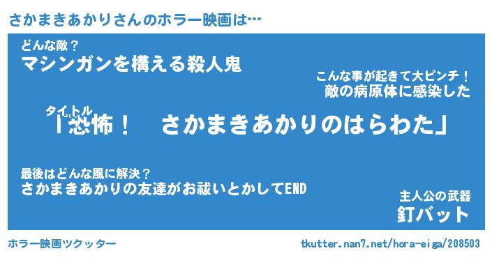 | 男性向けラノベタイトル風あだ名 | 『さかまきあかりの憂鬱』 |