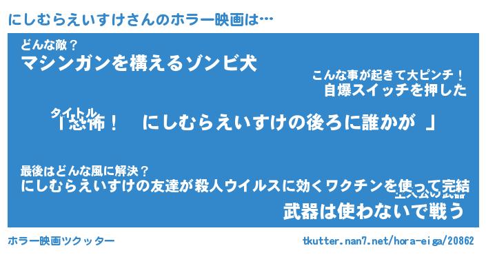 | 男性向けラノベタイトル風あだ名 | 『にしむらえいすけの憂鬱』 |