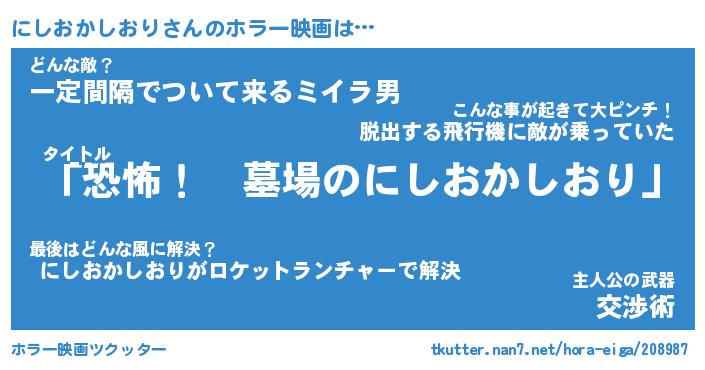 | 男性向けラノベタイトル風あだ名 | 『にしおかしおりの憂鬱』 |