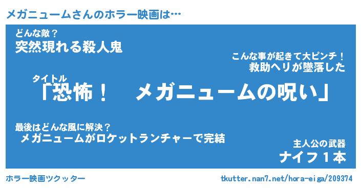 | 男性向けラノベタイトル風あだ名 | 『メガニュームの憂鬱』 |