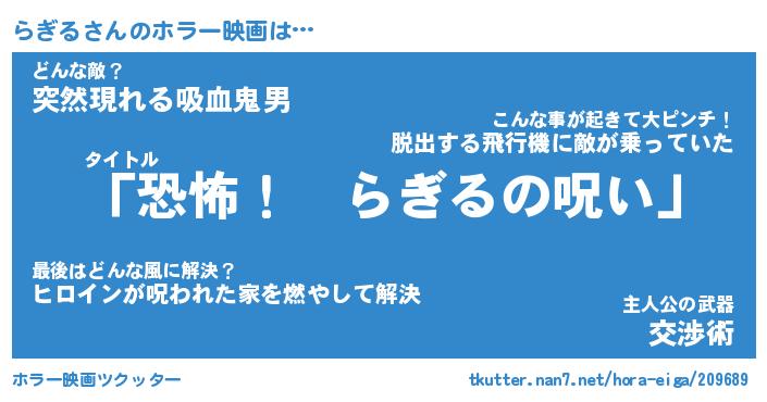| 男性向けラノベタイトル風あだ名 | 『らぎるの憂鬱』 |