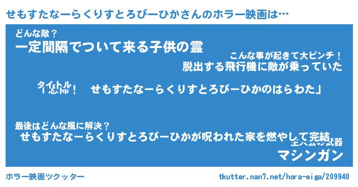| 胡散臭い通販商品みたいなあだ名 | 『必ず成功するブレスレット…その名も「せもすたなーらくりすとろびーひか」』 |