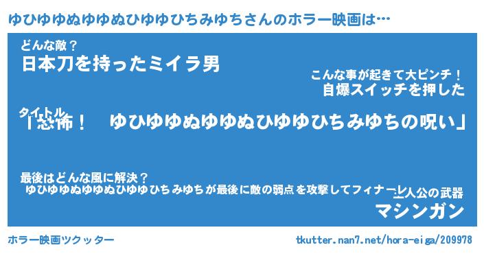 | 男性向けラノベタイトル風あだ名 | 『ゆひゆゆぬゆゆぬひゆゆひちみゆちの憂鬱』 |