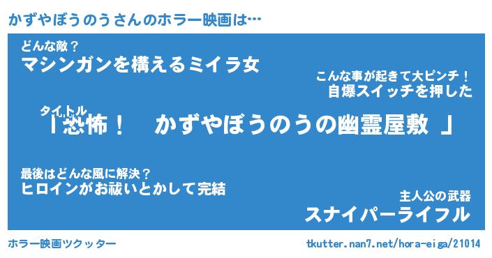 | 男性向けラノベタイトル風あだ名 | 『かずやぼうのうの憂鬱』 |